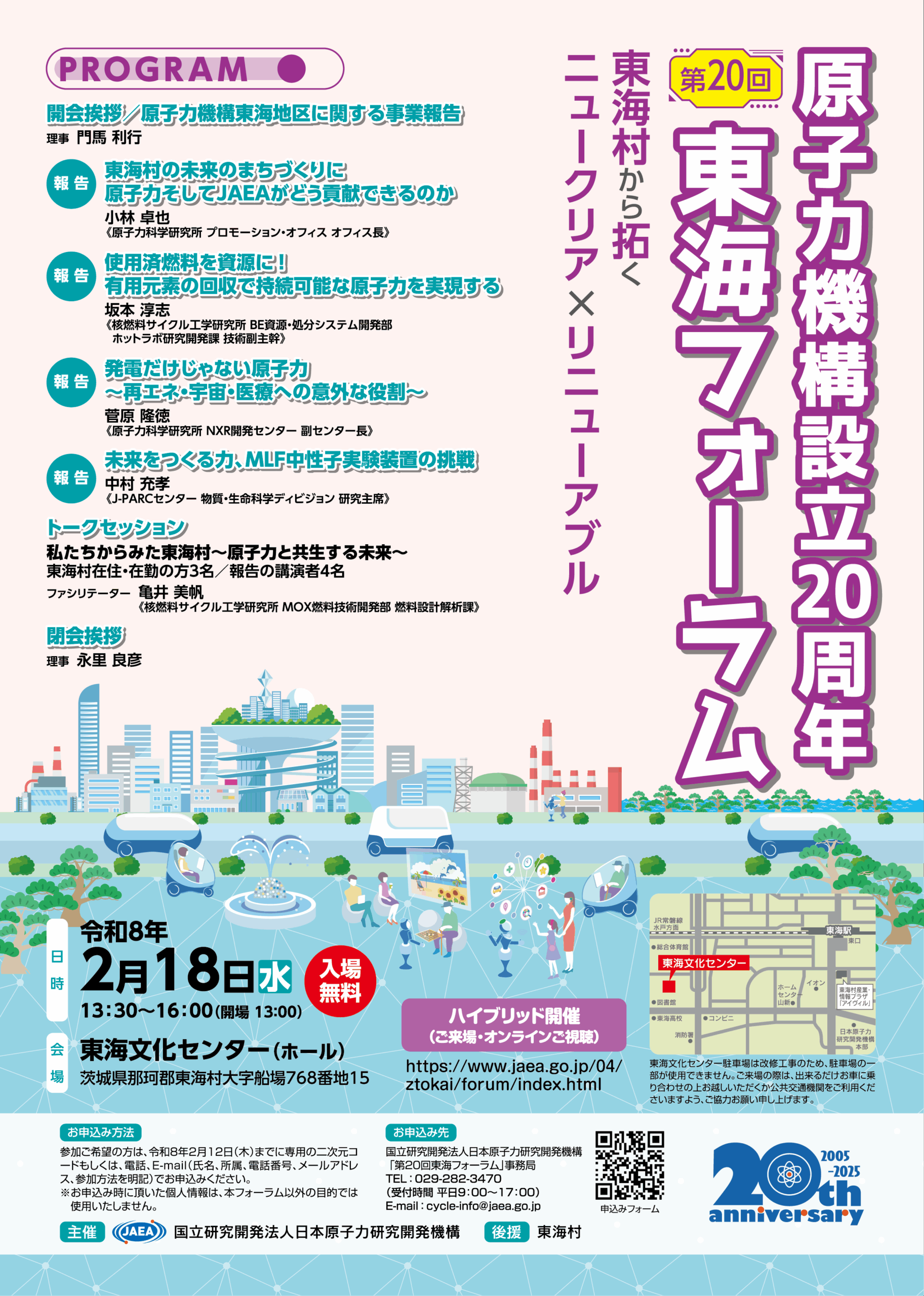 【原子力機構より】 第20回東海フォーラム(~東海村から拓く ニュークリア×リニューアブル~)が開催されます!