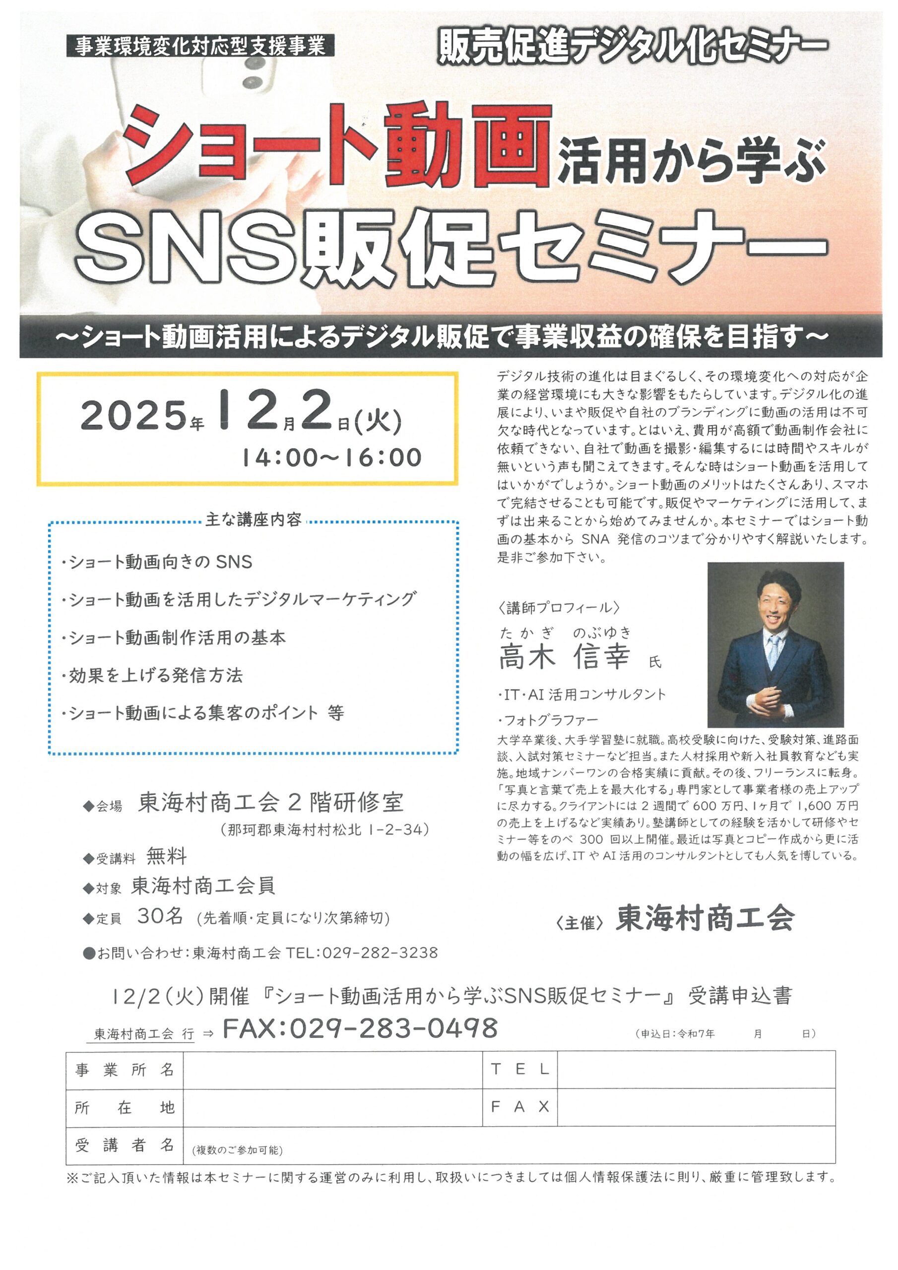 ショート動画活用から学ぶSNS販促セミナー(12/2)